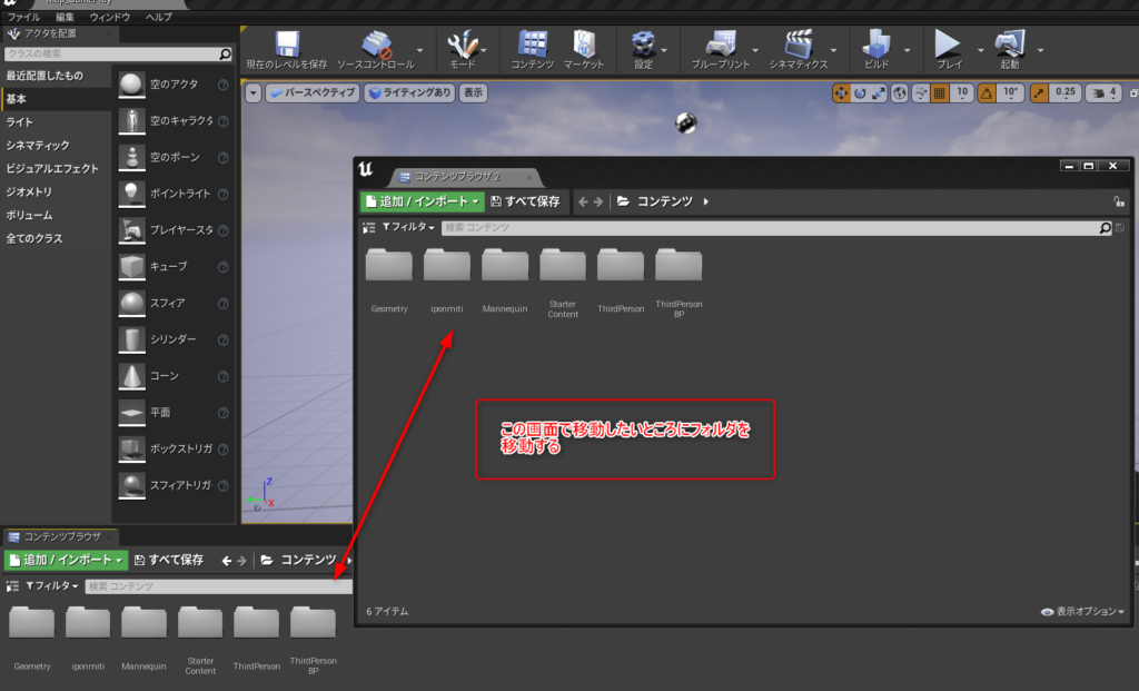 ウインドウのコンテンツブラウザを開きコンテンツブラウザ2を選択