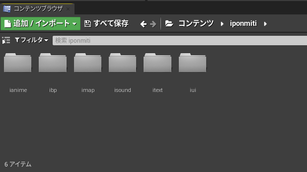 ゲーム制作を始める前にコンテンツに制作したいゲームのフォルダを作ります。((例 ここでは一本道なので、Iponmiti のフォルダを作ります。