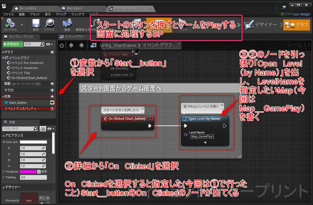 【UiWg_StartGame】をのイベントグラフ(グラフ)を開く
