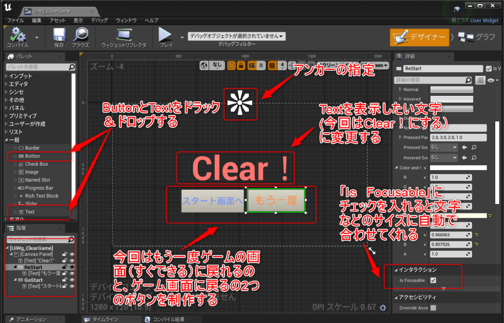 【UiWg_ClearGame】を開きデザイナーを表示する
