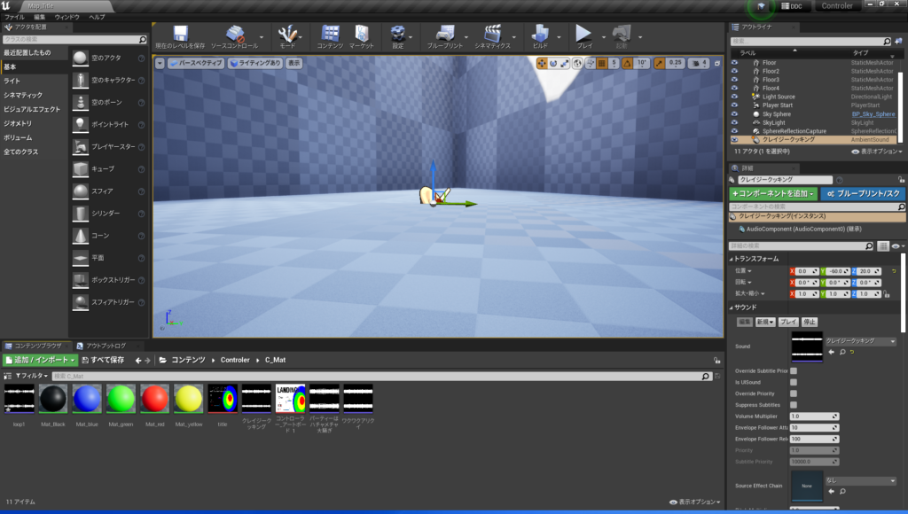 ・そのファイルをBGMを流したいレベルの床にドラッグアンドドロップで置く(これはゲームプレイでは見えないもの)