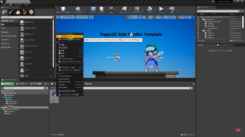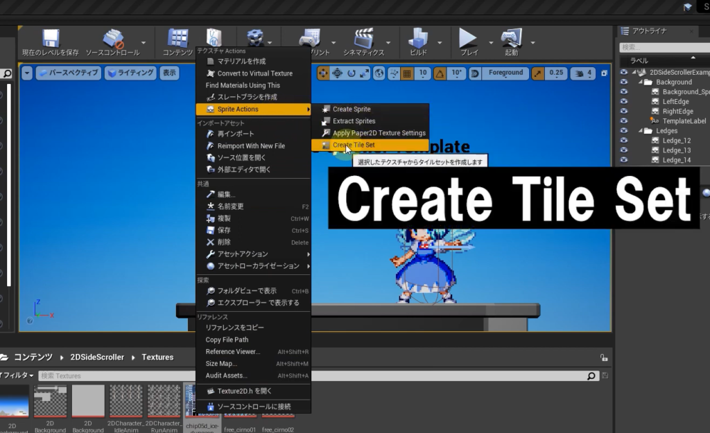 設定が終わったら右クリック→Sprite Actions→Create Tile Setを選択し、できたものをダブルクリック。